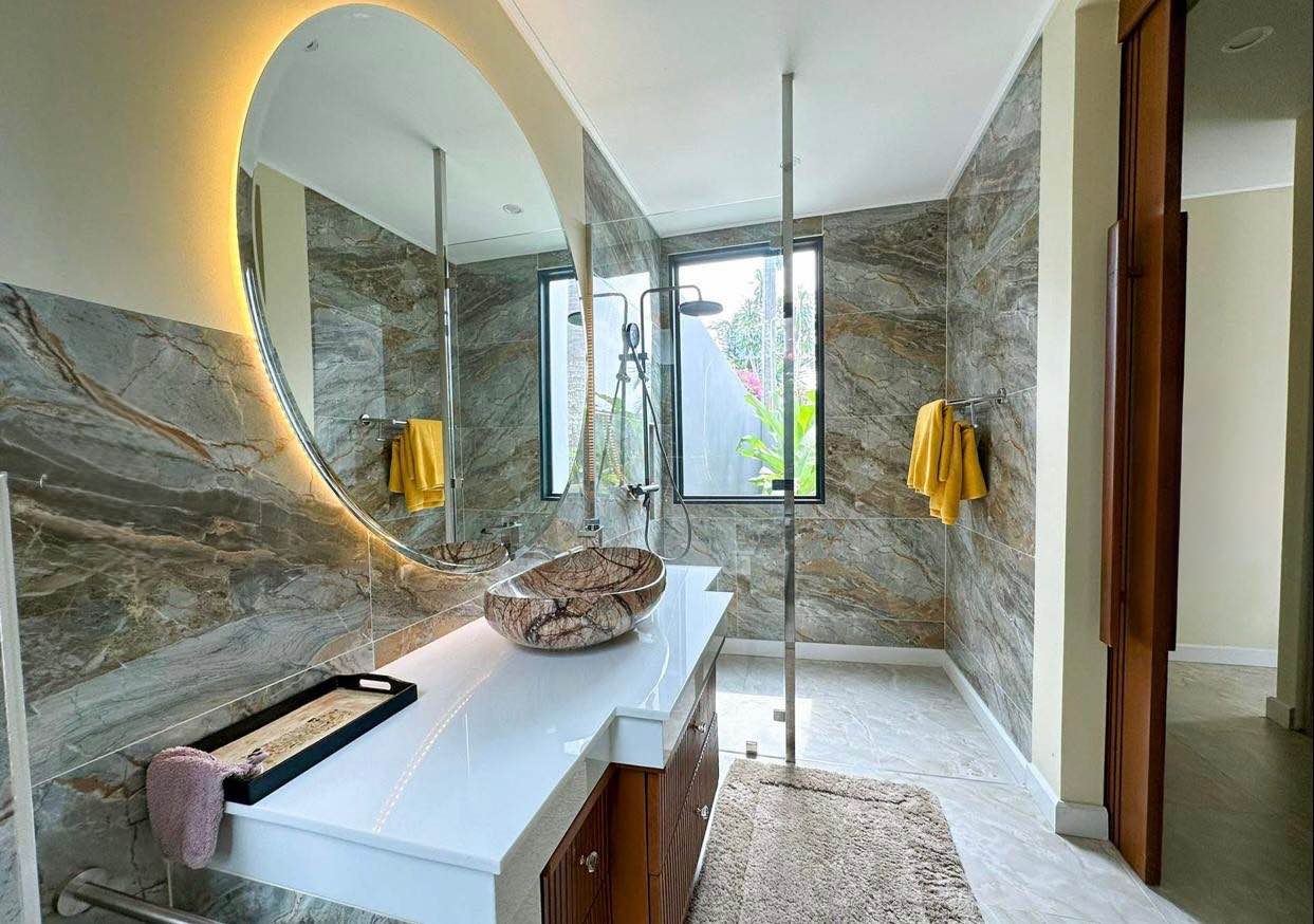 Thoughtfully designed for refined tropical living, the villa features 3 bedrooms and multiple well-appointed bathrooms, including a spacious master suite with a walk-in closet and a distinctive indoor and outdoor bathroom. A separate guest pavilion with 2 additional bedrooms and full bathrooms creates ideal privacy for family members or visitors, while the private swimming pool with outdoor patio area and large landscaped garden brings the appeal of private villas with pool to life. Inside, the villa includes a fully equipped kitchen, open-plan living space, dedicated gym room, TV and entertainment room, guest bathroom, and an upstairs loft office with terrace, making it especially attractive for long-term residents who value both leisure and productivity. Indoor and outdoor laundry areas, covered parking, and an additional sala above further enhance the property’s practicality and lifestyle appeal. Included in the rent are maid service twice per week, pool maintenance twice per week, garden maintenance twice per week, laundry service for linen and towels, and high-speed internet. Located only 5 minutes from Boat Avenue and 10 minutes from Laguna and Bang Tao Beach, with easy access to restaurants, cafes, and international schools, this villa is a rare opportunity within the market of long-term villa rentals in Phuket. The property is ideal for a minimum 1-year rental contract, with additional lease options available upon request.