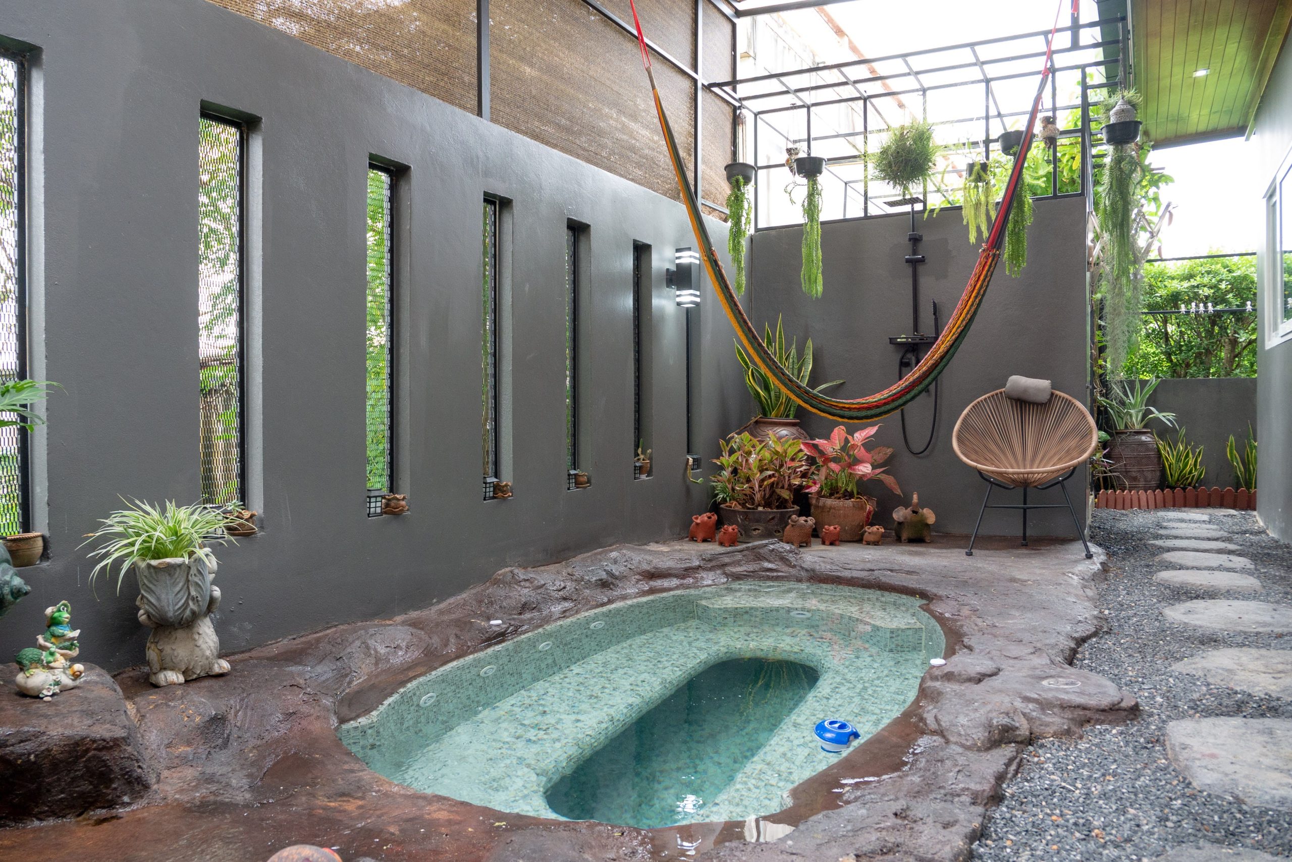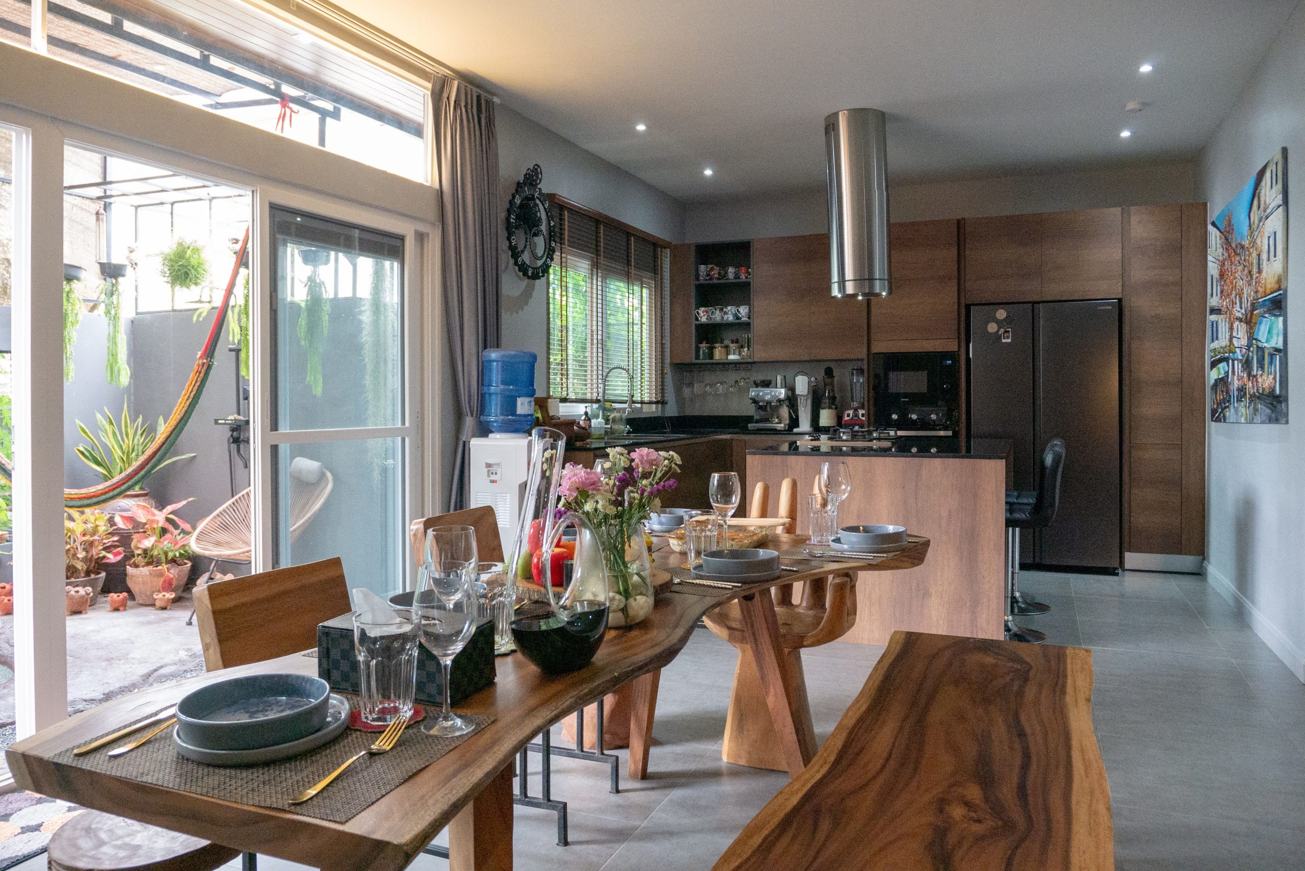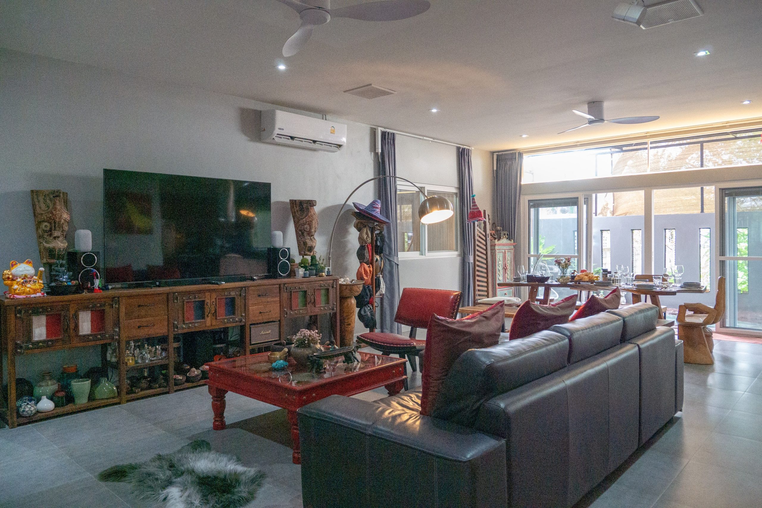Outdoors, you’ll find gorgeous landscaped gardens at the front and back, plus a garage for one car. Additional highlights include CCTV cameras, designer furniture, smart curtains, and water filtration. The location is prime—just minutes from Rawai and Nai Harn beaches, international schools, restaurants, and shopping centers.