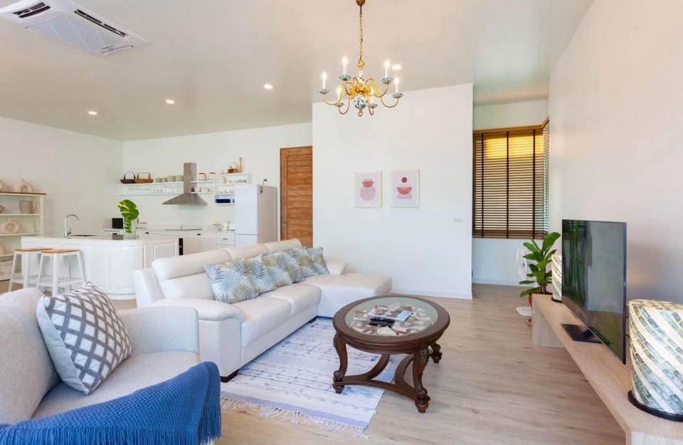 This luxury penthouse features 2 bedrooms and 1 bathroom, an open-plan living area with contemporary décor, a fully equipped kitchen, high-speed Wi-Fi, and a private outdoor Jacuzzi overlooking the sea. Residents enjoy access to an infinity communal pool with breathtaking views, secure parking, and a peaceful neighborhood ideal for relaxation. Nearby are Rawai beachfront cafés, restaurants, gyms, wellness centers, and international schools—making it an ultra-specific and highly useful option for long-term living.