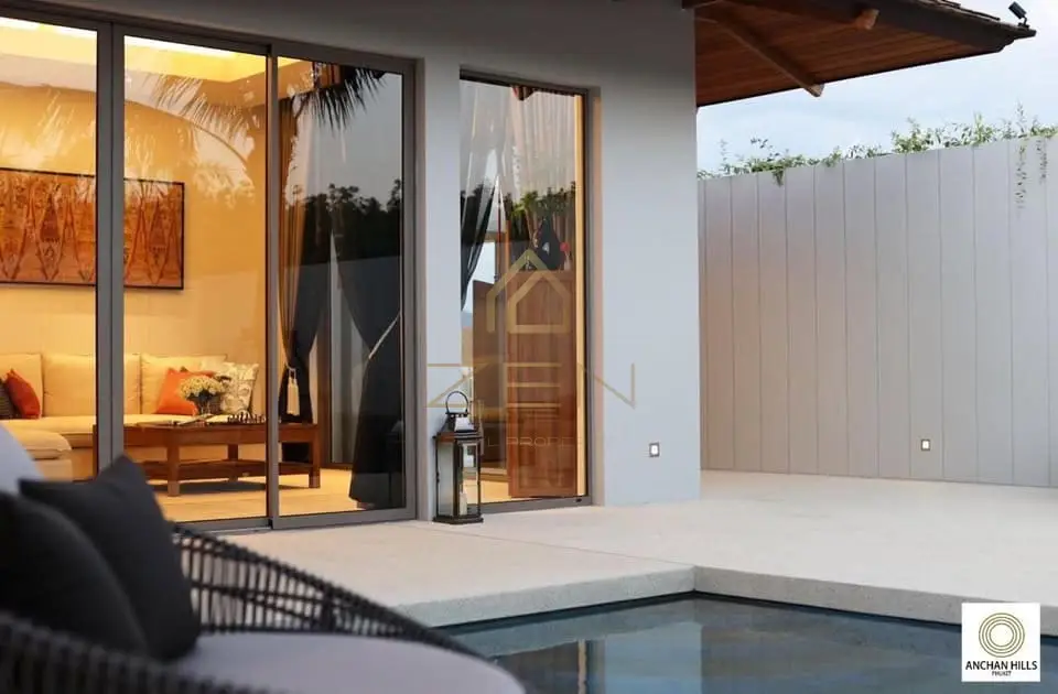Set within the prestigious Anchan Hills community, this modern 2-bedroom private villa represents refined living in one of Phuket’s most desirable residential areas. Designed for comfort, privacy, and long-term enjoyment, the villa combines contemporary architecture with European-quality construction. Just minutes from Bang Tao and Layan beaches, it is an ideal choice for those seeking a premium lifestyle in Phuket with space, tranquility, and effortless access to key infrastructure.