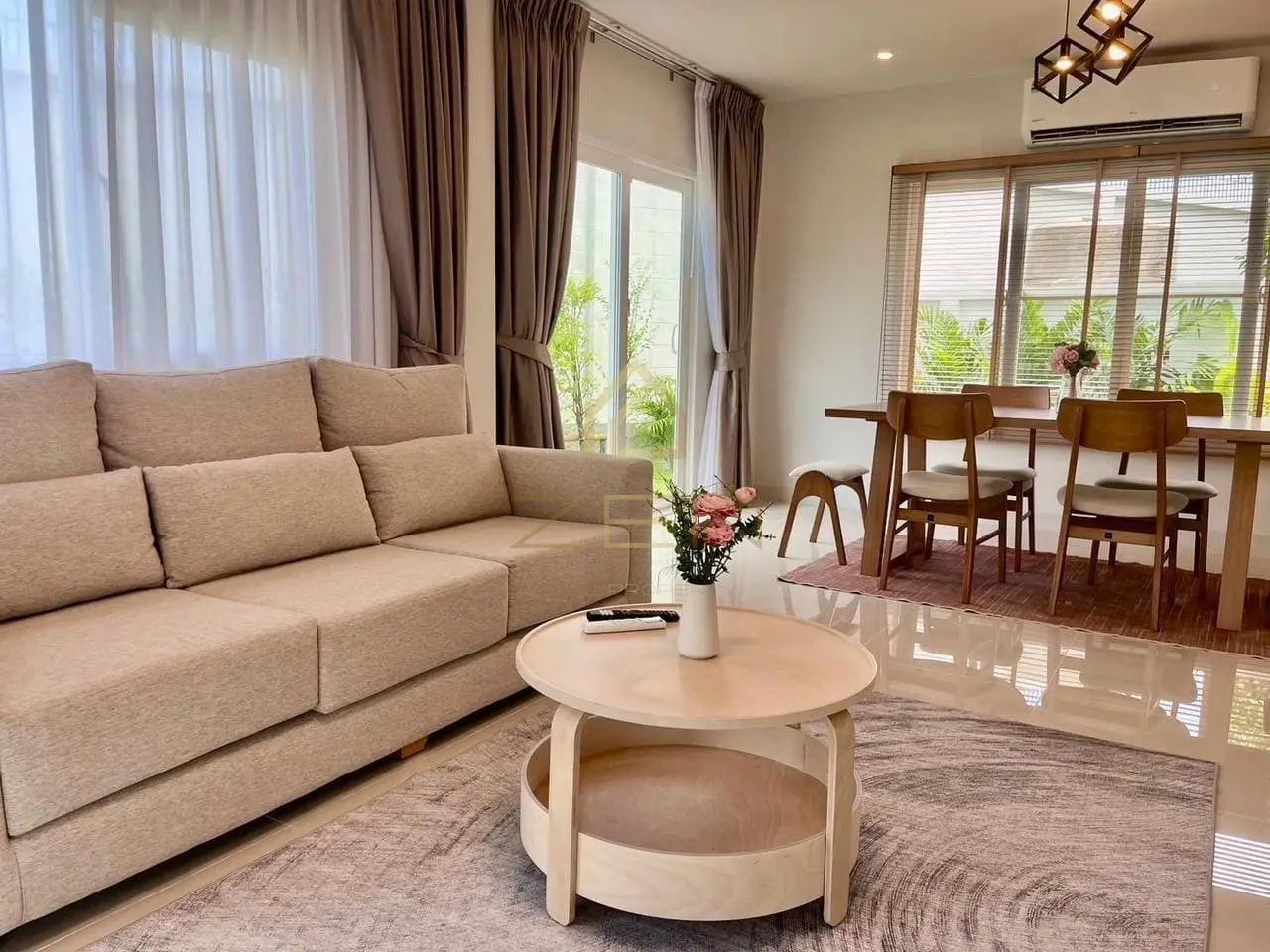 This private house sits on 203 sqm of land and features 3 bedrooms and 2 bathrooms across two levels, making it an ideal choice for families or professionals. The open-plan layout is fully furnished with stylish, brand-new appliances including a dishwasher, washing machine, dryer, and a modern kitchen complete with oven, microwave, and electric stoves. Four air conditioners and two flat-screen TVs ensure year-round comfort. Residents enjoy the convenience of two private parking spaces, a water filter system, and access to a landscaped garden — a true luxury home by the sea.