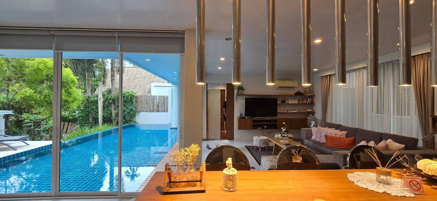 Experience refined tropical living in this modern 3-bedroom pool villa located in the highly desirable Chalong area of Phuket. Offering a stunning rooftop terrace with mountain views, this fully furnished residence is designed for comfort, privacy, and convenience. Move-in ready, it combines contemporary architecture with resort-style living, making it ideal for long-term villa rentals in Phuket and premium lifestyle seekers.