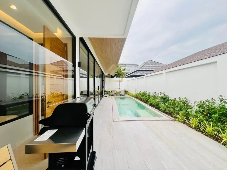 A brand-new private villa just 3 minutes walking distance to Bang Tao Beach — one of the most desirable locations on the island of Phuket. This home invites you into a world of comfort and style, perfect for families and long-term stays. A highlight is the private pool with jacuzzi and outdoor BBQ zone, creating a resort-like atmosphere right at home.