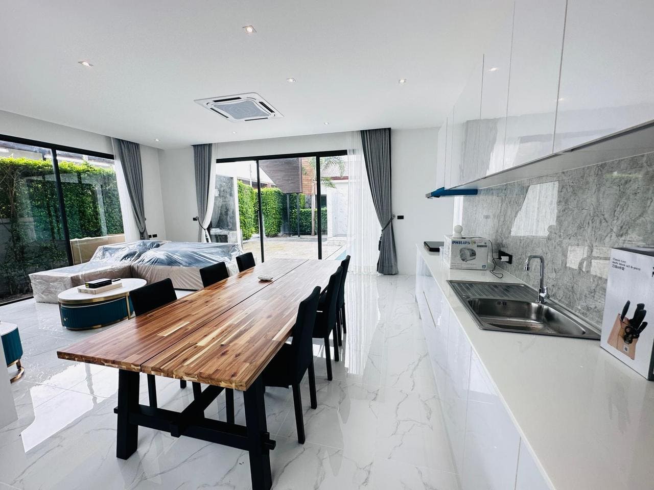 Set on Phuket’s sought-after southern coast, this offering combines functionality and style: 3 en-suite bedrooms, 4 bathrooms, a spacious living area with a 75” Smart TV, and a fully equipped kitchen with induction cooker and oven. The villa features a Daikin central air-conditioning system, separate laundry room with washer and dryer, and high-speed internet. Outside, a private saltwater pool is maintained twice weekly, ensuring effortless living in one of the finest private villas with pool. Residents benefit from 24-hour security and video surveillance, reinforcing authority and peace of mind.