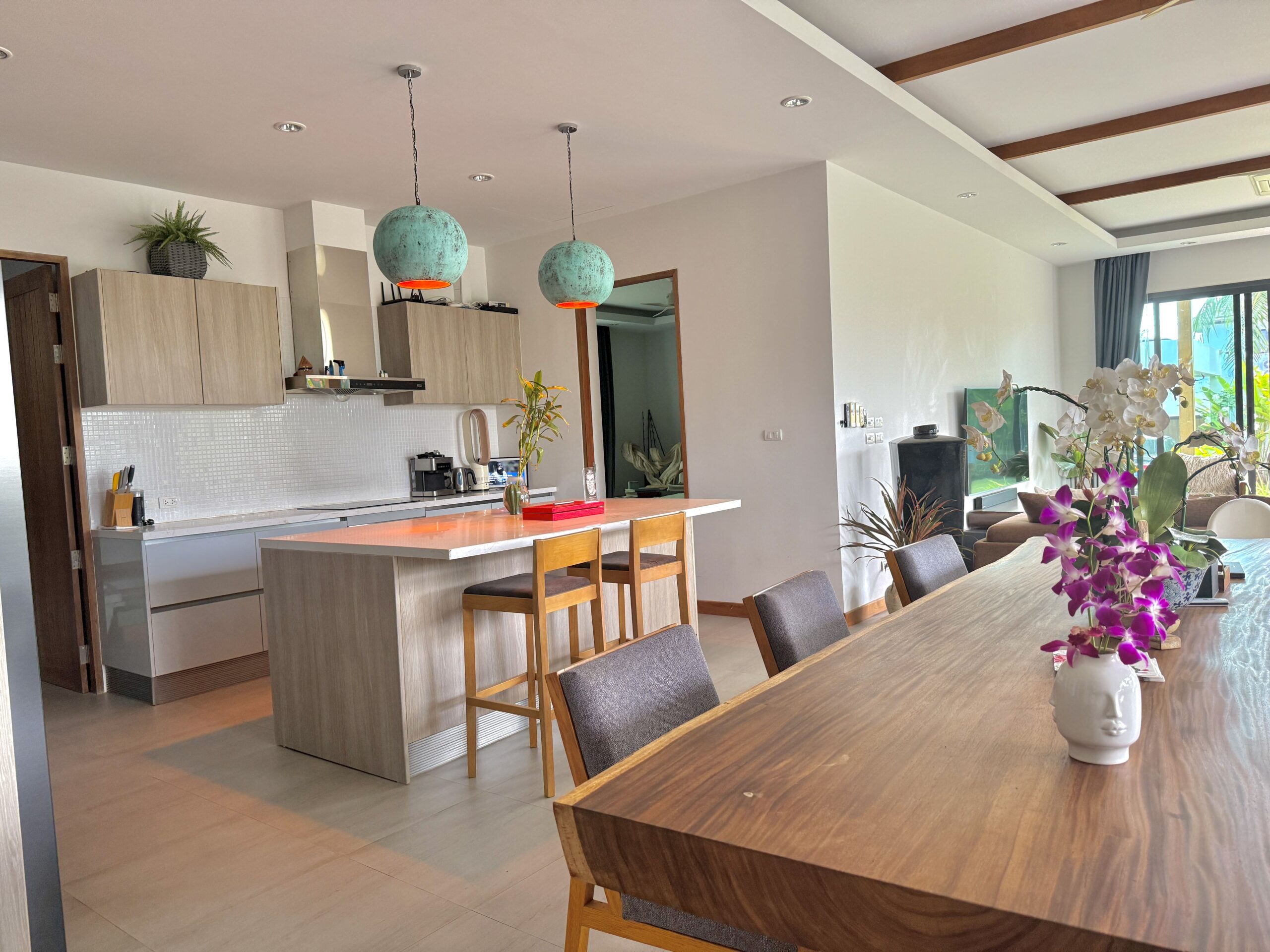 Set on a thoughtfully designed layout, the villa features three spacious bedrooms, modern bathrooms, and a fully equipped kitchen ideal for everyday living. The large terrace with outdoor dining creates a seamless indoor–outdoor lifestyle, enhanced by a pizza oven and BBQ—perfect for entertaining friends and family. Stylish interiors, quality furnishings, and generous living spaces make this home both practical and refined. Private parking and a secure, quiet neighborhood ensure comfort and privacy. Located close to Boat Avenue, residents enjoy quick access to international restaurants, shopping, cafes, and the Laguna area, with some of Phuket’s best beaches just a short drive away. This makes the property highly sought-after among long-term residents, reinforcing strong social proof for luxury villas in Phuket.