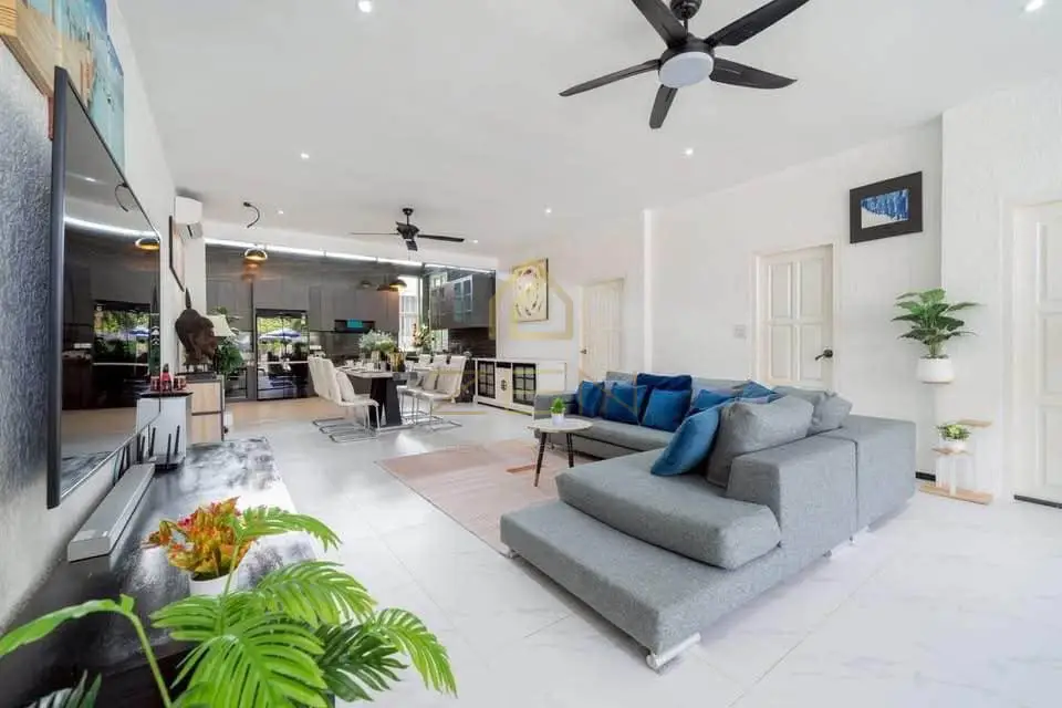 This elegant property features 3 bedrooms and 3 bathrooms, designed for comfort and functionality — perfect for families or couples working remotely from Phuket. The villa includes two kitchens, convenient for hosting guests and daily living, along with spacious parking for up to 3 cars. The private swimming pool and green garden create a relaxing atmosphere with plenty of space for leisure. Maintenance and comfort are fully supported: pool service once a week, garden care twice monthly, and weekly cleaning service included, making daily life effortless. Free Wi-Fiensures smooth work and entertainment. With pet-friendly conditions, this home is ideal for those relocating with family and furry companions.