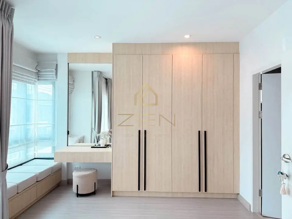 The property features 4 bedrooms and 3 bathrooms, a bright and spacious living and dining area, and a fully equipped modern kitchen with premium appliances — including a dishwasher and double refrigerator. The home is fully furnished and ready to move in. Enjoy the convenience of an automatic garage gate, parking for 2 cars, and a private garden — ideal for relaxation, family gatherings, or outdoor play. The Supalai Lake Ville community provides 24-hour security, landscaped common areas, and a quiet, family-friendly atmosphere.