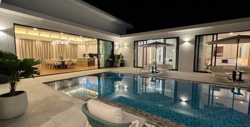 Discover an exceptional standalone villa at Le Da Villas, ideally located near Bang Tao Beach—one of Phuket’s most sought-after residential areas. This modern 5-bedroom property is designed for families and discerning tenants who value space, privacy, and premium living by the sea. With no common fees and full ownership Chanote title, this villa represents a rare opportunity in the segment of luxury homes by the sea and long-term villa rentals in Phuket.