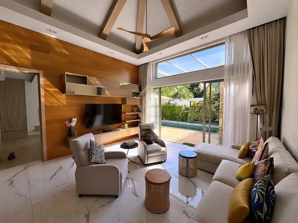 Designed for both refined living and stable income, the estate offers 6 bedrooms and 5 bathrooms with high ceilings and bright interiors that enhance airflow and comfort. Two villas are seamlessly connected by a sala and dining pavilion, delivering privacy and flexibility for family living or hosting. The 21-metre private pool includes a waterfall and dedicated kids’ zone, complemented by landscaped gardens, a private gym, kids’ play area, two wine cellars, mosquito screens, filtered water system, Smart TVs, and full facilities for long-term family living. Secure parking and leisure areas support everyday comfort. The location provides fast access to shops and markets within 5 minutes, Thanyapura and UWC within 8 minutes, Ma Doo Bua in 7 minutes, Layan and Nai Thon beaches in 15 minutes, Bang Tao Beach in 20 minutes, and Phuket International Airport in 20 minutes. The property is sold freehold with Chanote title via Thai company ownership and includes a locked rental contract generating 200,000 THB per month for two years, consistent with long-term villa rentals in Phuket (minimum 1-year terms).