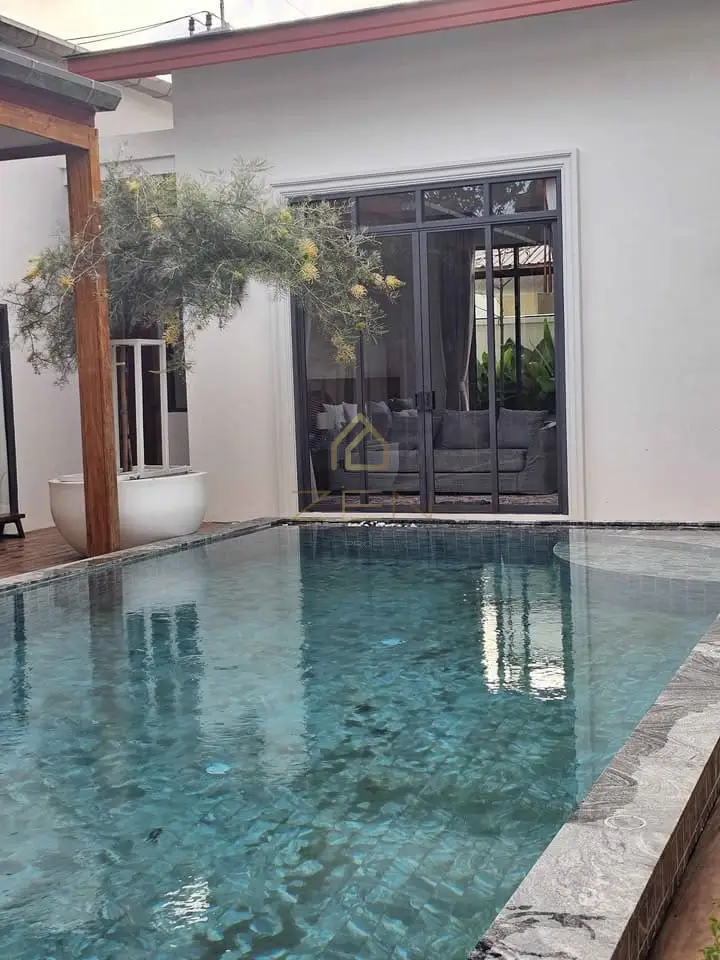 Designed for comfort and elegance, the villa features expansive living areas, a fully equipped kitchen, and six ensuite bedrooms that open to lush greenery and natural light. The highlight is the large private swimming pool surrounded by a serene tropical garden, perfect for relaxation and entertaining. With secure parking, high-speed internet, and 24-hour security within the Laguna community, every detail ensures effortless island living.