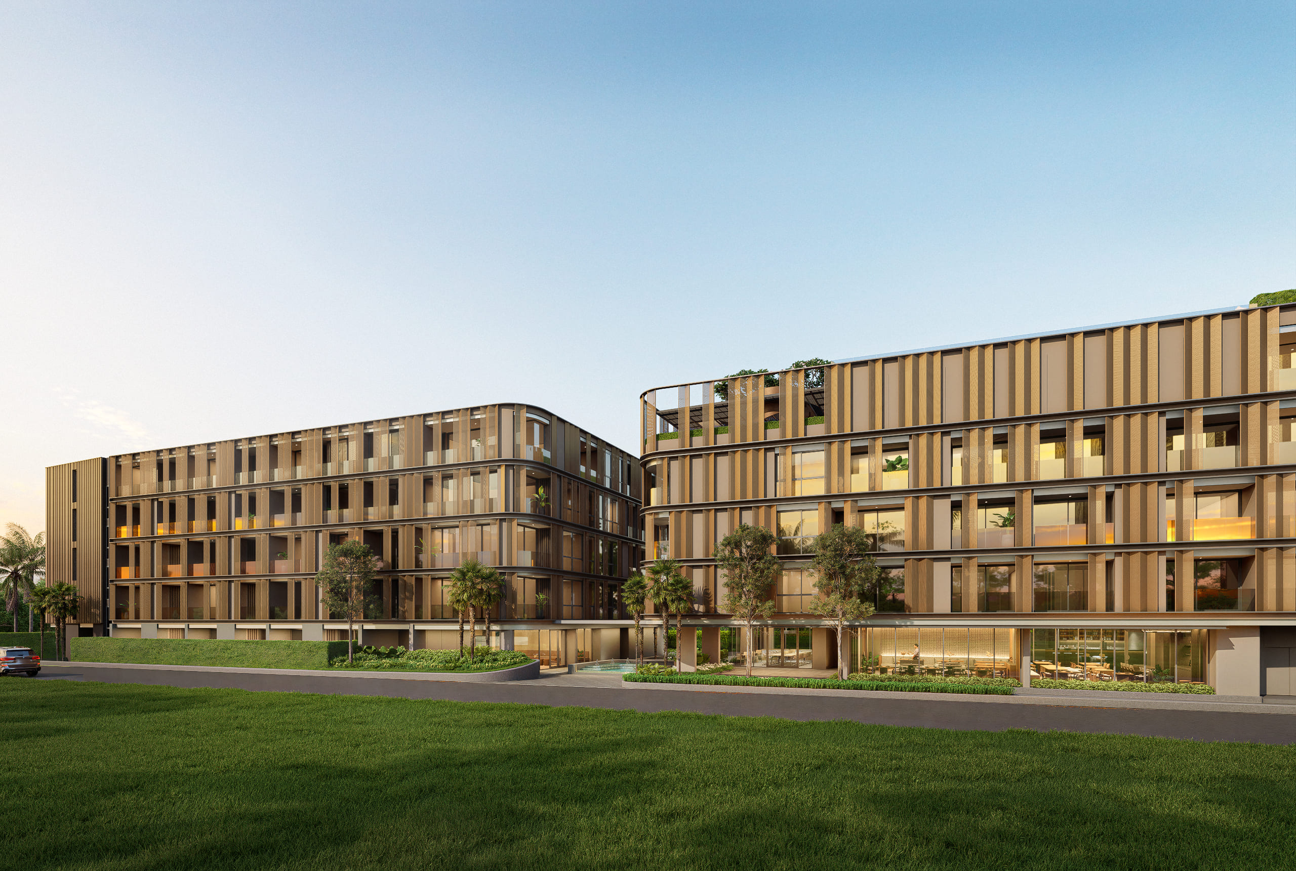 Ranging from 29.5 to 108 square metres, these ultra-specific residences include studios, 1-bedroom, 2-bedroom units, and limited presidential suites—each designed to maximize space, natural light, and functionality. Residents enjoy access to an exceptional collection of amenities rarely found in villas in Phuket, including a rooftop pool, fully equipped gym, spa, sauna, steam room, and even an ice bath for recovery and wellness. Social and lifestyle features such as a co-working space, kids club, outdoor cinema, padel courts, and golf simulator create a complete living ecosystem.